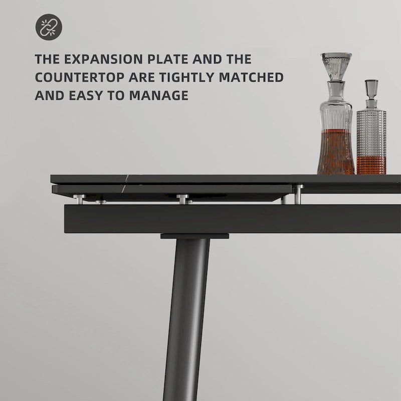Ensemble de salle à manger extensible 7 pièces (de 62,9 pouces à 94,4 pouces) avec plateau en pierre frittée et 6 chaises