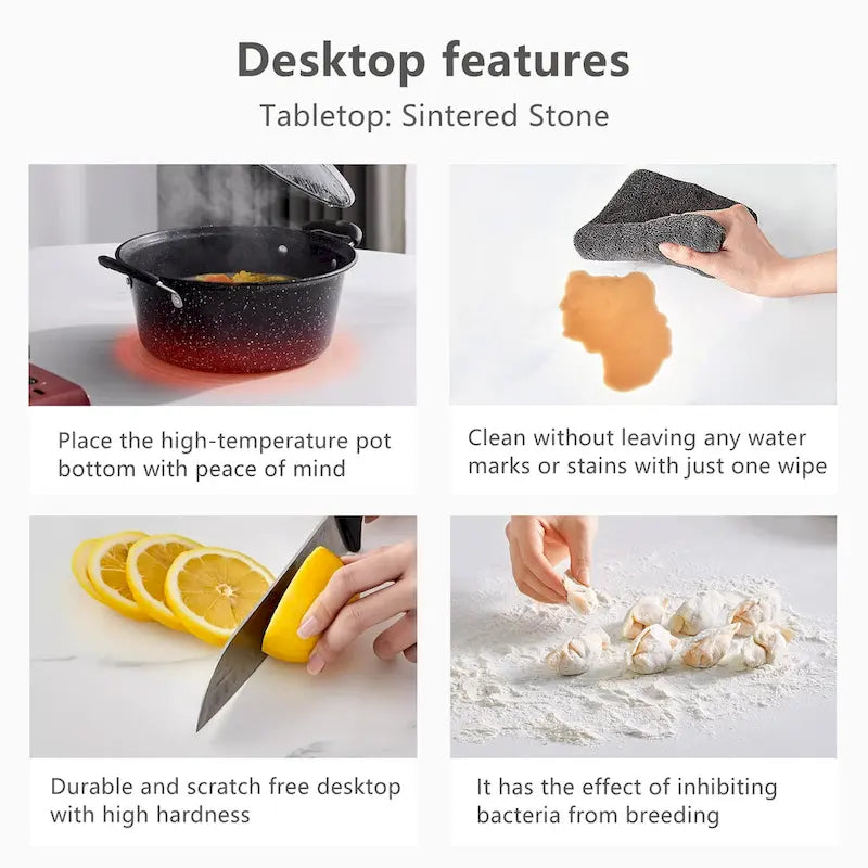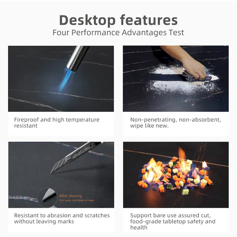 Élégance et durabilité. Fabriqué en pierre frittée lisse, notre plateau de table est résistant à l'usure et aux rayures, et facile à nettoyer. Sa texture brillante unique s'harmonise parfaitement avec tous les styles de décoration intérieure.