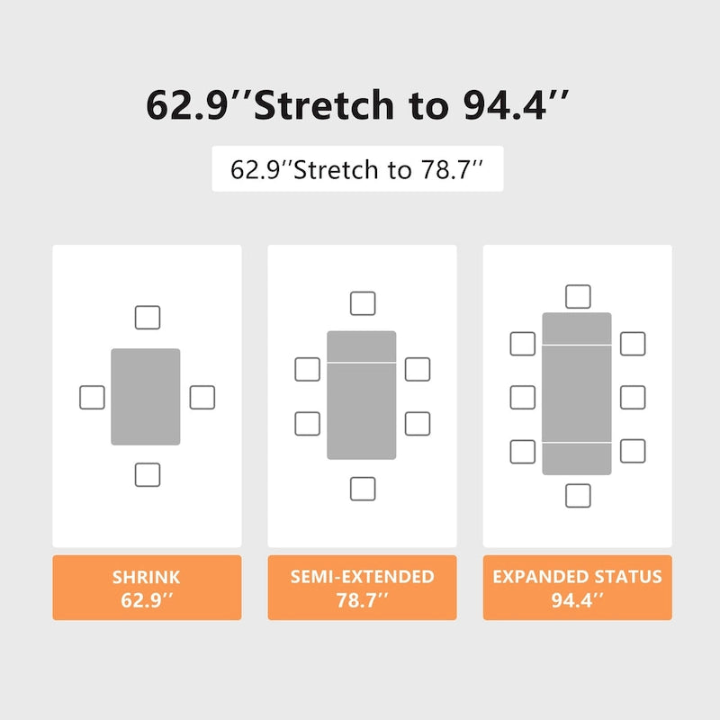Idéale pour recevoir, notre table extensible, avec sa longueur réglable de 62,9 à 94,4 cm, accueille facilement 6 à 10 personnes. Parfaite pour les réunions de famille ou les retrouvailles entre amis.