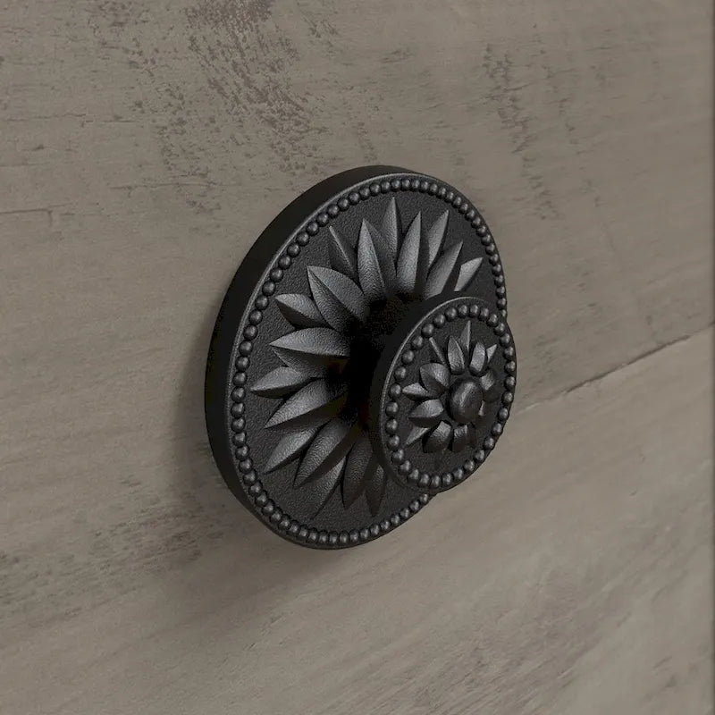 - La quincaillerie en graphite noir et la rosace décorative conçue sur mesure créent un style unique, pensé pour les intérieurs de style industriel moderne, traditionnel et de ferme moderne.